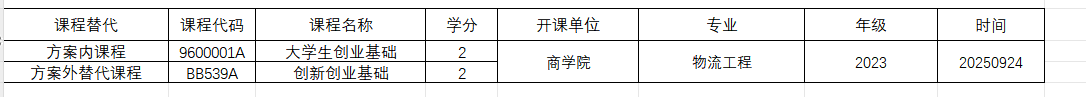 管理工程学院2025-2026-1学期第4周课程替代公示