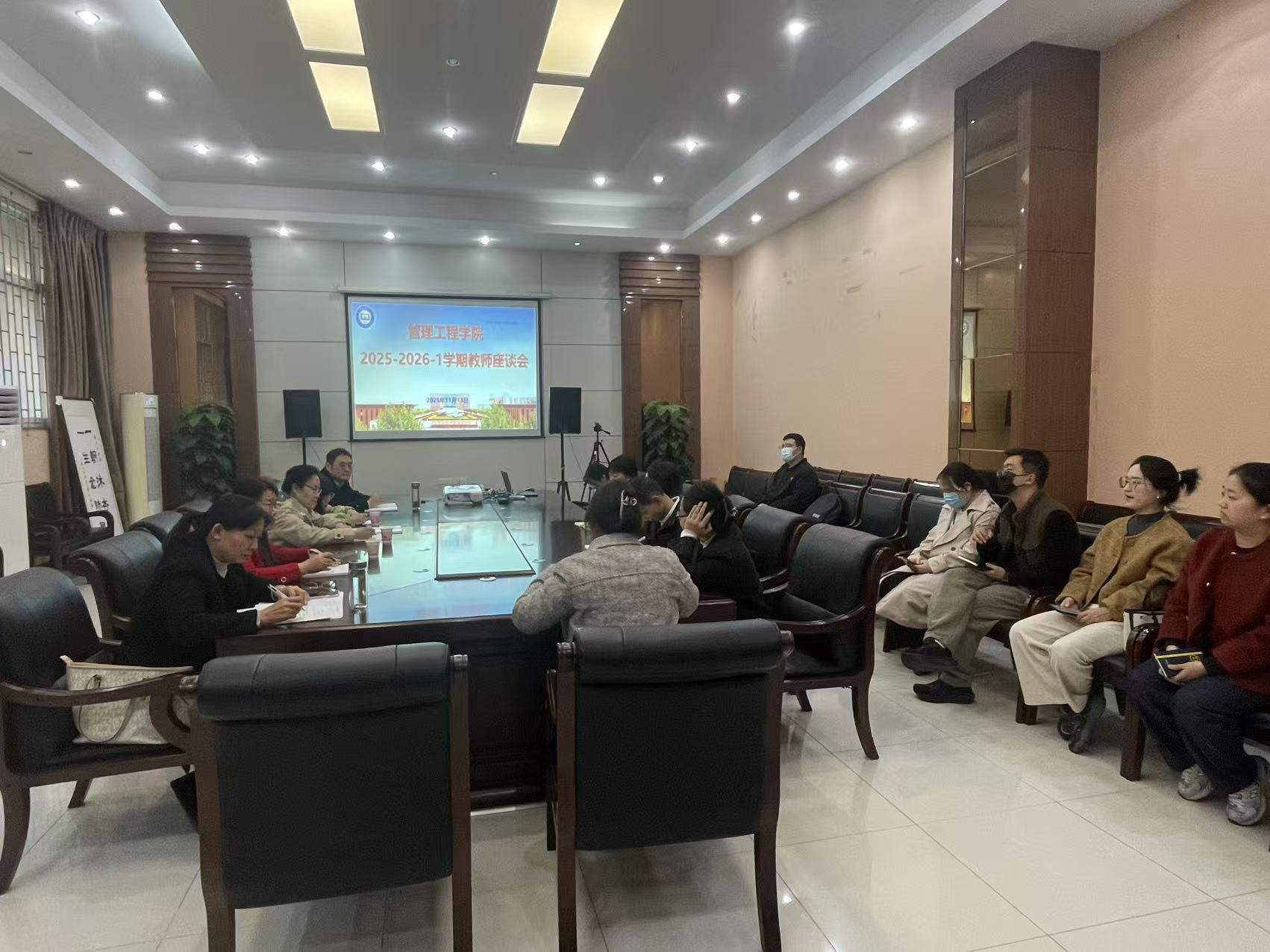 11月13日下午,管理工程学院在08C104会议室召开2025-2026-1学期教师座谈会。会议由学院教学副院长宋志刚主持,部分青年教师代表参会,校督导小组成员应邀出席。