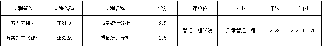 管理工程学院2025-2026-2学期第4周课程替代公示