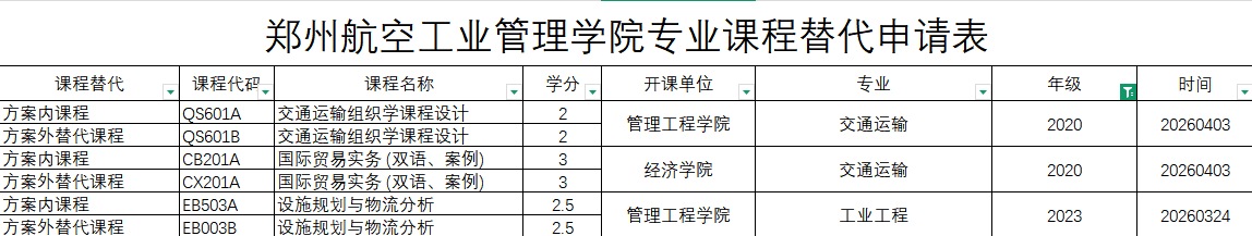管理工程学院2025-2026-2学期第5周课程替代公示
