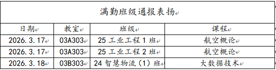 【课堂考勤通报】2026年春季学期第3周课堂考勤通报