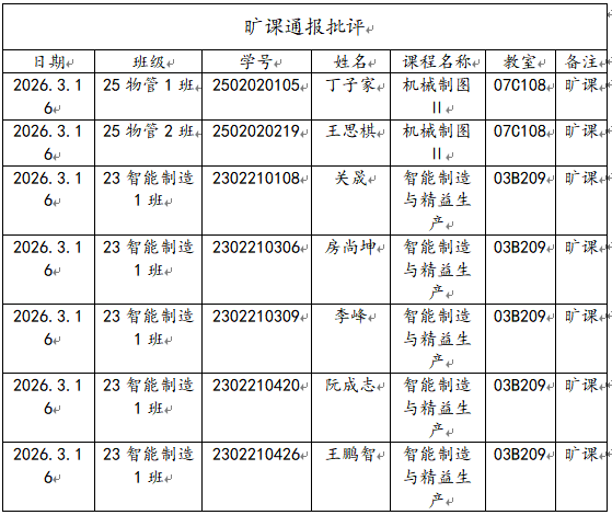 为营造良好学风,教育引导学生端正学习态度,遵守课堂纪律,规范课堂秩序。现将我院2026年春季学期第3周课堂考勤情况予以