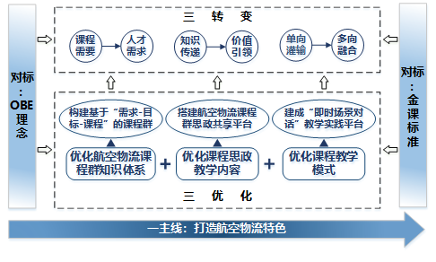有特色,才有生命力。作为行业类院校,坚守行业特色,有助于形成独特的学科专业优势。面对国际化、复合型航空物流人才培养的要求,课程组创造性提出“一主线二对标三优化三转变”的航空物流课程群教改模式,建立了涵盖《航空运输地理》《国际物流》《民航配载与平衡》《国际航空货物运输》《航空危险品运输》《航空运输综合课程设计》等课程的航空物流“理论+实践”课程群架构,打造有特色、有内涵、有标准、有技术支撑的课程群。对标OBE理念及金课标准,课程组优化航空物流课程群知识体系、课程思政内容和教学模式,实现从课程需要到人才需求、从知识传递到价值引领、从单向灌输到多向融合的转变,为航空物流特色人才培养提供了新路径,为各高校构建特色课程群进而打造专业特色提供了新模式。