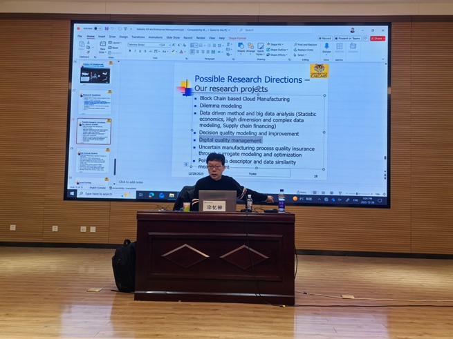 12月29日,我院邀请加拿大卡尔加里大学机械及制造工程系终身教授涂忆柳在图书馆第二报告厅作专题学术讲座,讲座主题为《工业4.0/5.0对工业工程的影响——问题与可能的研究方向》。学院质量管理工程系、工业工程系教师、全体研究生、本科生代表参加报告会,报告会由院长王永刚主持。