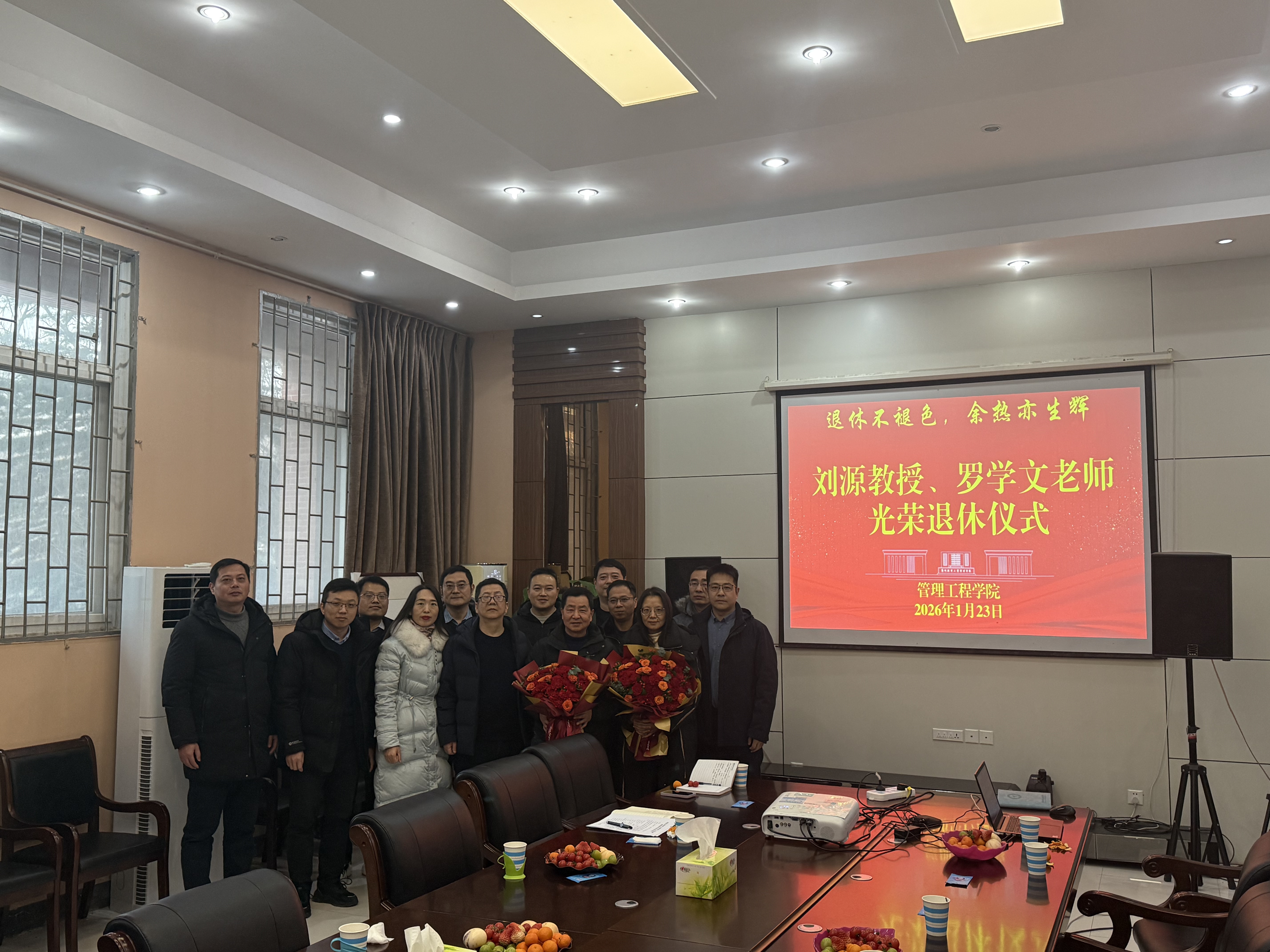 1月23日,我院在08C104会议室举行教职工光荣退休仪式,向辛勤耕耘数十载、为学院发展与人才培养作出突出贡献的退休教师们致以最崇高的敬意。院领导班子成员、各系主任、教师代表和两位退休教师刘源、罗学文齐聚一堂,共同见证这一温馨而庄重的时刻。仪式由院党委书记刘儒主持。