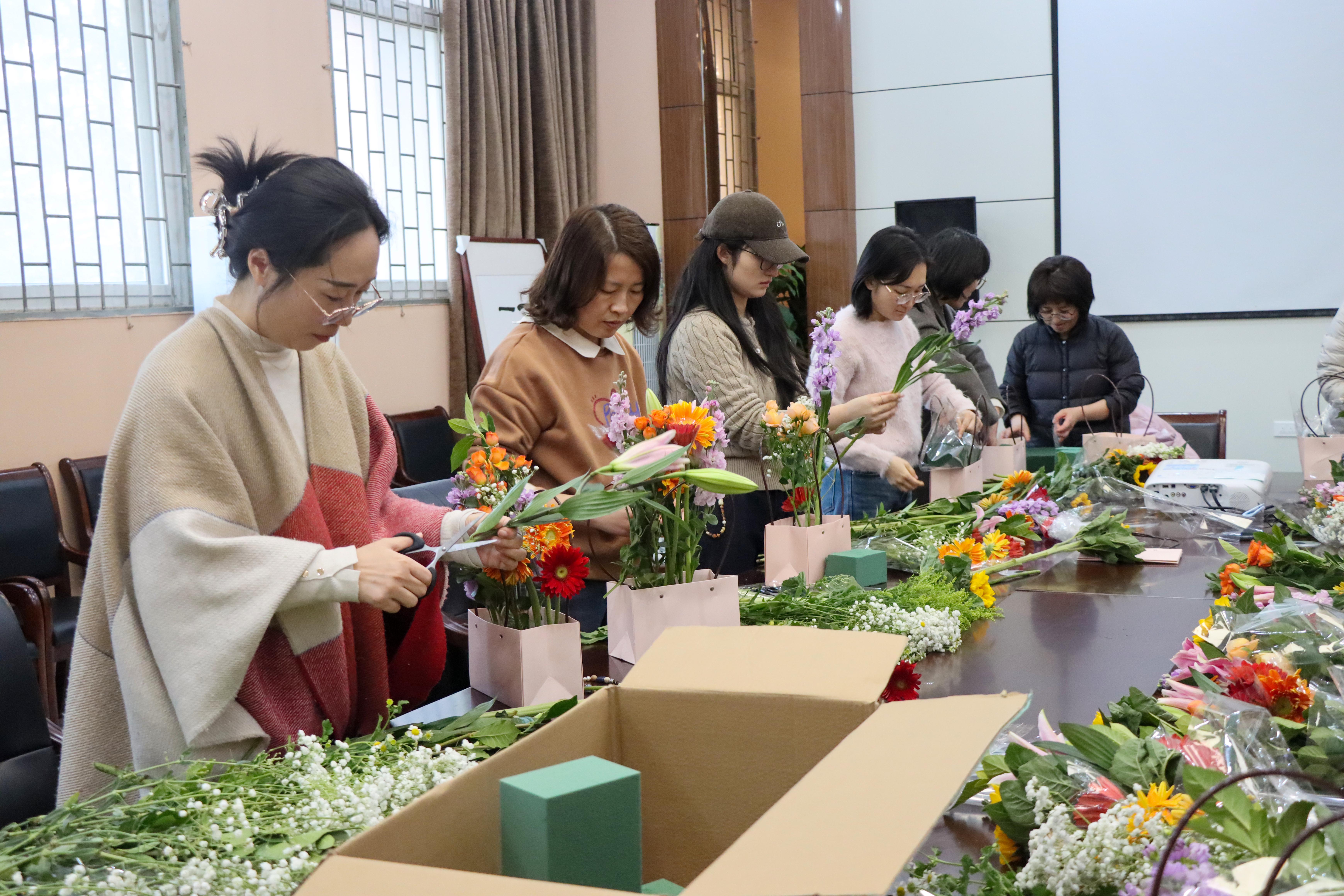 春意融融,芳华正好,为庆祝“三八”国际劳动妇女节,丰富学院女教职工的精神文化生活,陶冶审美情操,搭建交流互动的温暖平台,3月5日,我院在08C104会议室举办妇女节插花活动,让大家在花香氤氲中邂逅美好,共度专属于女性的浪漫时光。