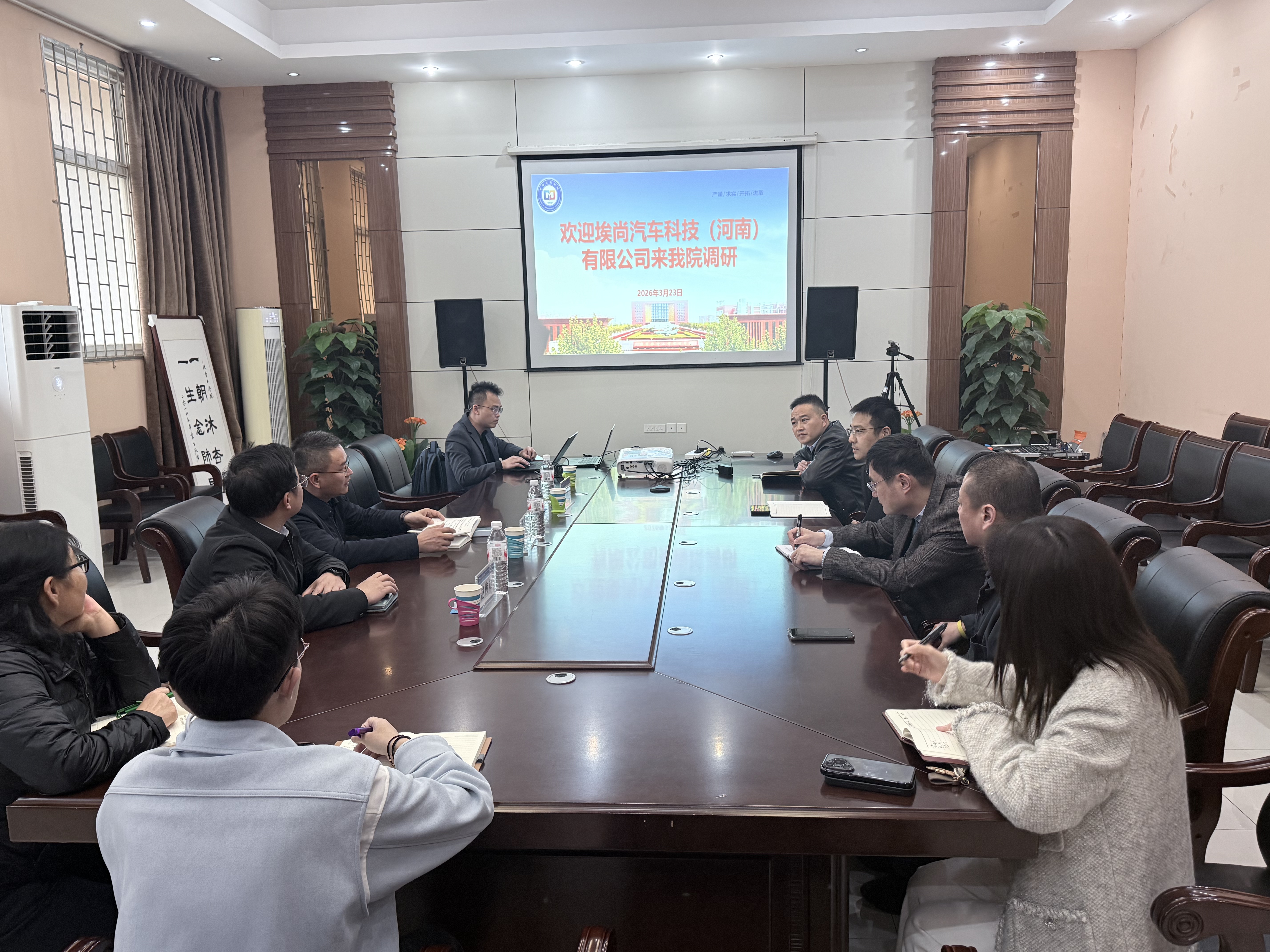 3月23日,埃尚汽车科技(河南)有限公司项目负责人郭亮一行莅临学院考察交流。学院党委书记刘儒、党委副书记孙罗卡、副院长宋志刚、质量管理工程系教师张霖、辅导员顾旭娥、马宇涛和民航学院辅导员赵星参加座谈,座谈会由刘儒主持。