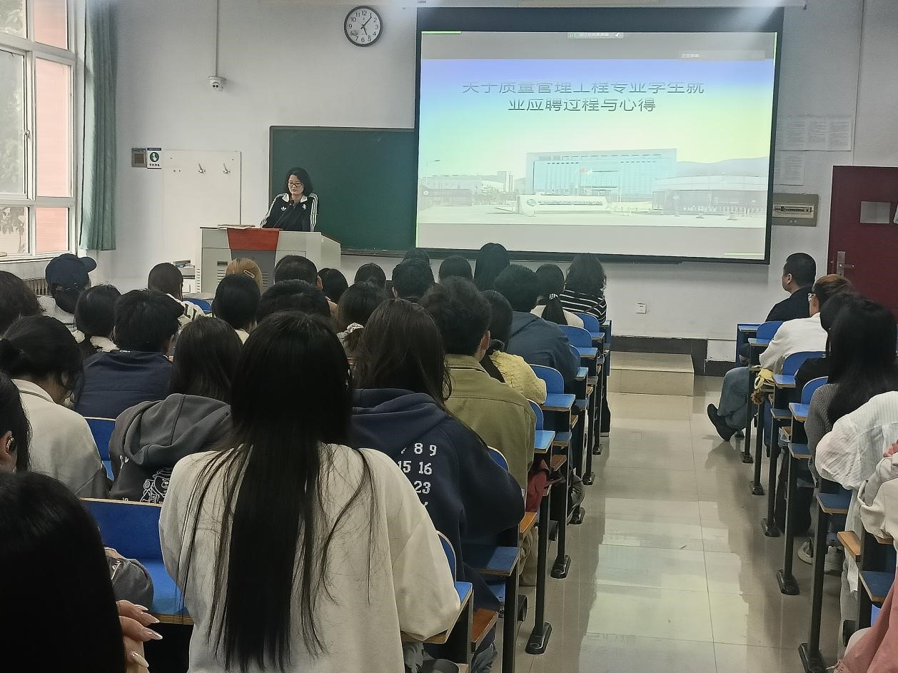 在校友分享环节,就职于北京航空材料研究院的2026届学生刘泉烨,结合在国防军工单位的工作感悟,分析了质量工程师在高端制造业中的核心地位。她指出,由于行业对“科班出身”的质量人才需求旺盛,毕业生在就业市场中具备显著的竞争优势。随后,就读于同济大学的2024届学生魏礼标分享了考研复试与实习经验。他强调统计学思维与实验设计等专业工具在复杂系统优化中的关键作用,并鼓励学弟学妹们通过学科竞赛、实习等方式提升实践能力,将专业知识转化为解决实际问题的硬实力。