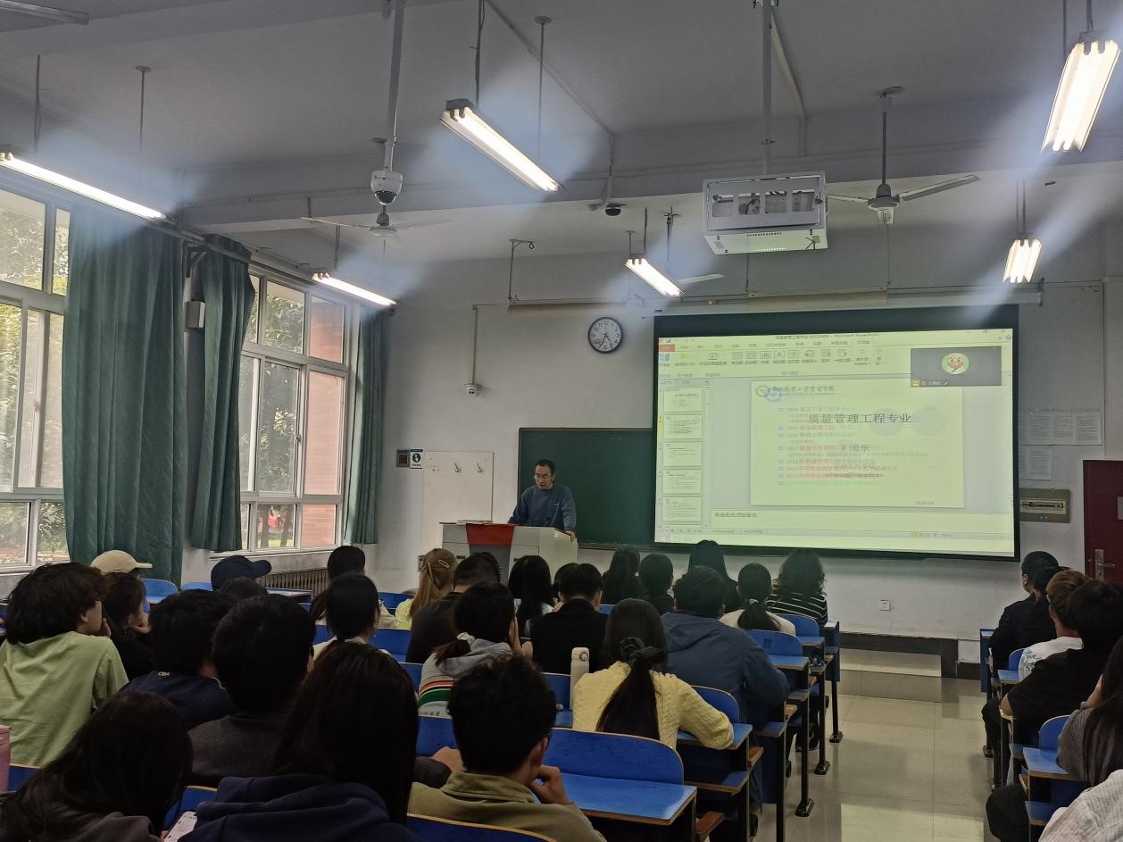 王国东向参会师生介绍学院质量管理专业的发展历程,学院质量管理教育积淀深厚,专业源头可追溯至国际质量科学院院士徐济超教授于1989年在我校创立的全国第一家质量工程研究所,是全国除北航外第二个开设该专业的院校。在软科发布的中国大学专业排名中,我校质量管理工程专业长期稳居全国前列,展示了极强的学科竞争力与行业认可度。学院依托薛丽教授、陈洪根教授等优秀专家组成的精英师资团队,始终致力于培养高素质复合型质量管理人才。