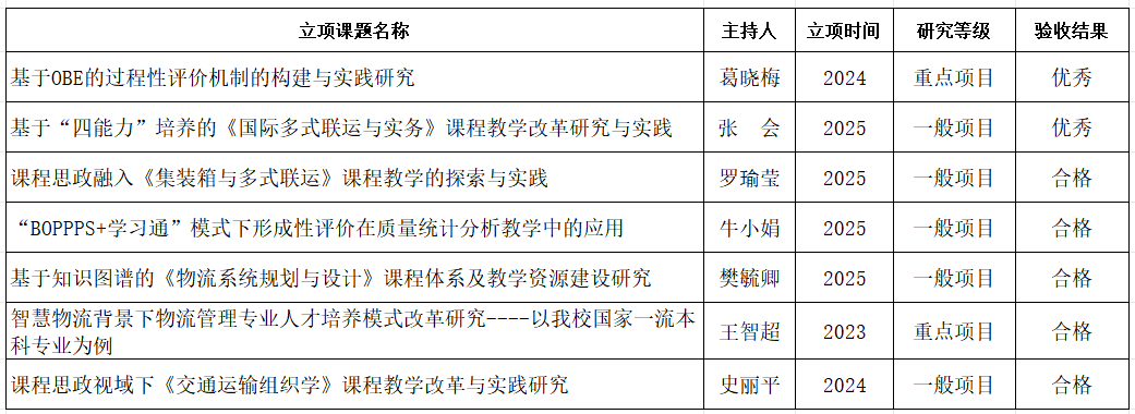 根据《关于做好2025年郑州航空工业管理学院教育教学改革研究与实践项目结项工作的通知》,我院组织开展了2025年度校级教育教学改革研究与实践项目结项评审工作,本次我院共7项教改项目参评。经评审专家审议,验收结果为优秀2项,合格5项,现将结果予以公示3天。如有异议,请于2025年12月19日之前向院长办公室反映,电话:61912301。