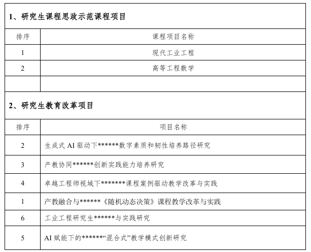 2026年管理工程学院校级研究生教育改革与质量提升工程项目申报排序公示