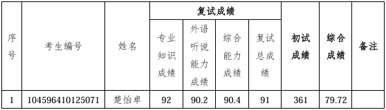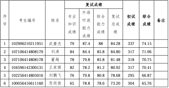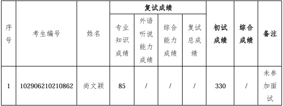 根据学院2026年研究生招生复试工作安排,现将一次调剂考生复试成绩公示如下: