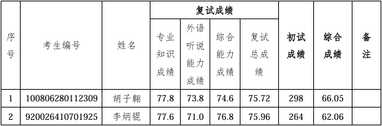 根据学院2026年研究生招生复试工作安排,现将二次调剂考生复试成绩公示如下: