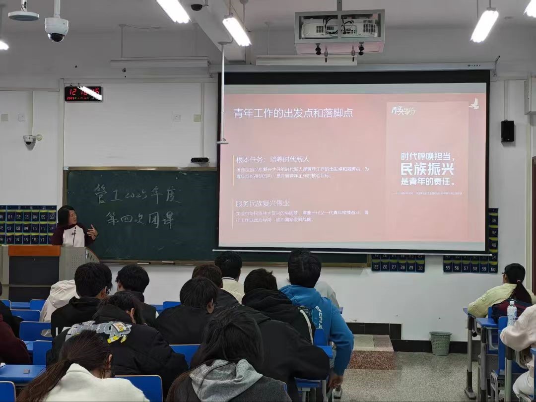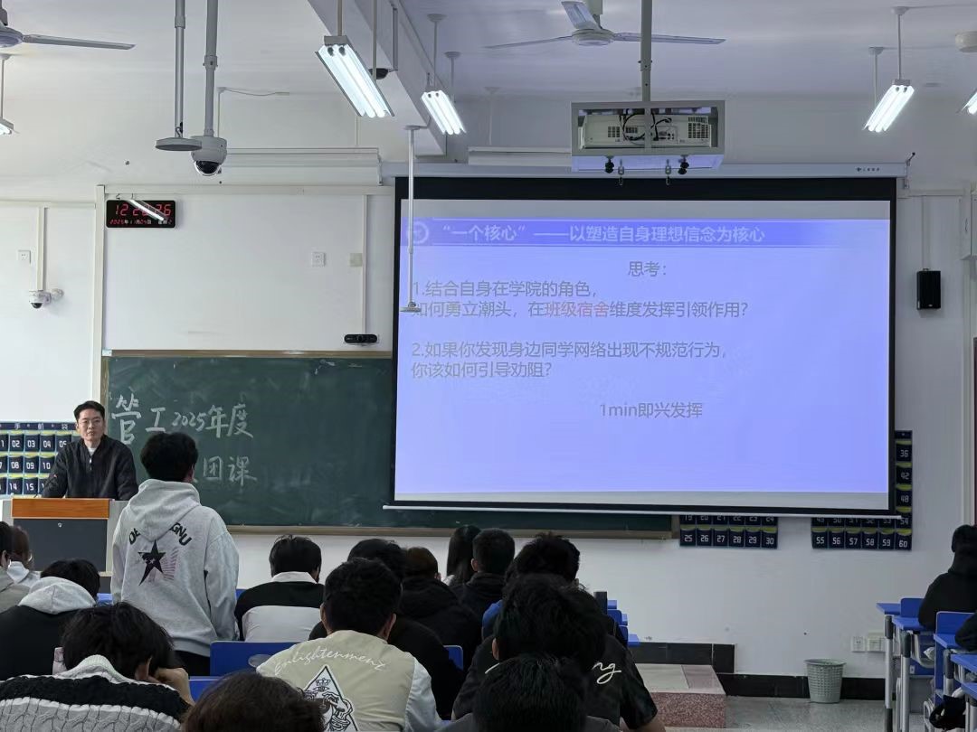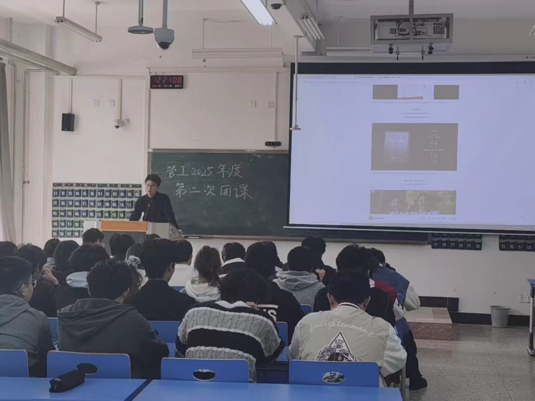 11月4日,姜旭扬老师在03A103以“筑牢理想信念,践行青年担当”为题展开讲授:围绕“共青团员的精神底色”,结合青年榜样案例,解读新时代团员需具备的责任意识与家国情怀,让团课既有思想深度,又贴合同学们的成长实际。